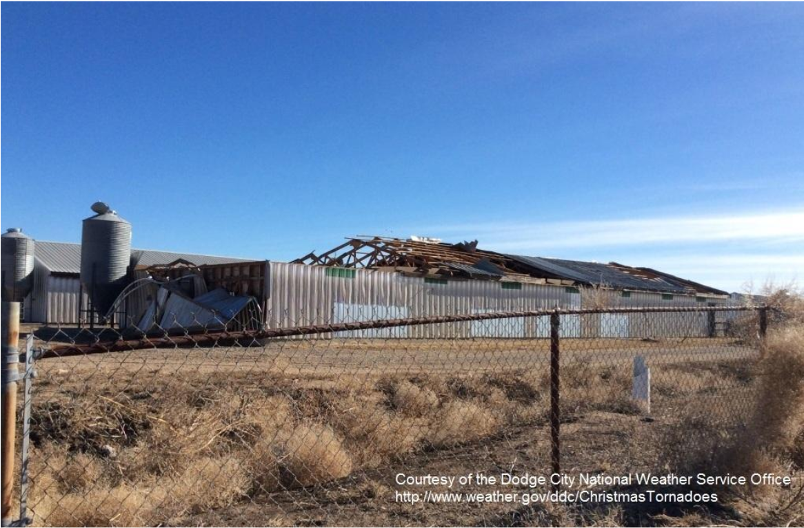 Christmas saw a rare outbreak of severe weather. In southwest Kansas, a squall line triggered several small brief tornadoes. According to the Dodge City National Weather Service office, there were 6 tornadoes that touched down. All tornadoes were rated as EF0, and tracks ranged from less than a mile near Kismet to almost seven miles southeast of Greensburg.